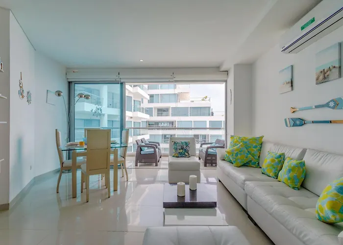 Apartamento Espectacular Apartamento En Cartagena Seaway935 - Morros está situado a una distancia de 7 km de la Casa de Rafael Nuñez, en el distrito La Boquilla, y acoge a sus huéspedes con una piscina de inmersión, un jacuzzi y una sauna. El apartamento se encuentra a unos 300 metros de Kitesurf Colombia y a una distancia moderada del Convento La Popa de la Galera.